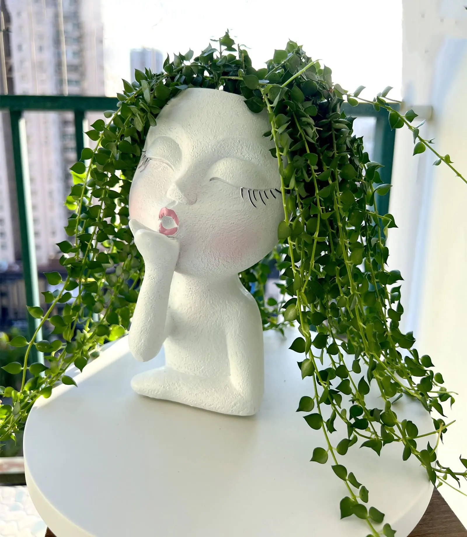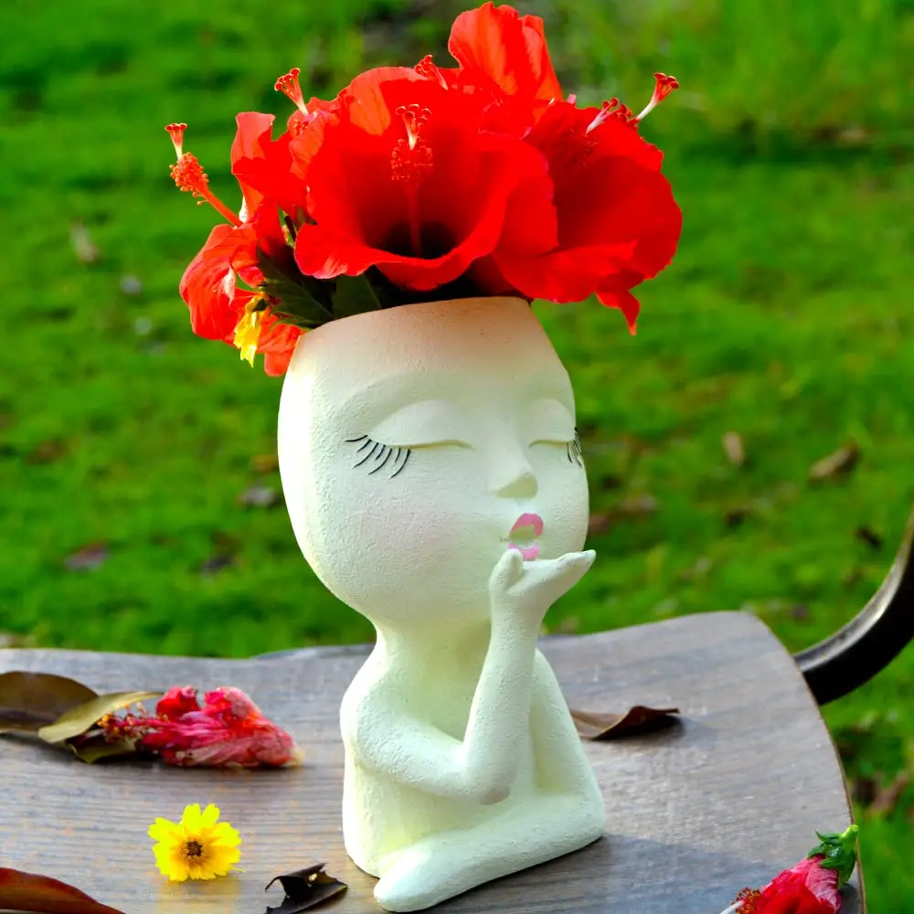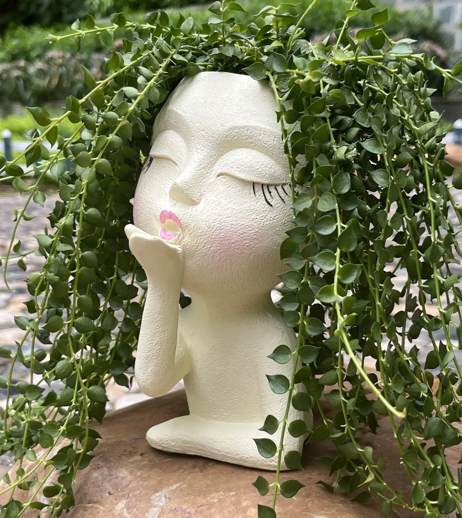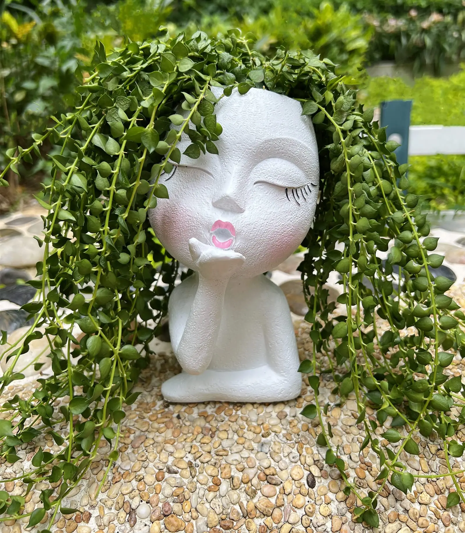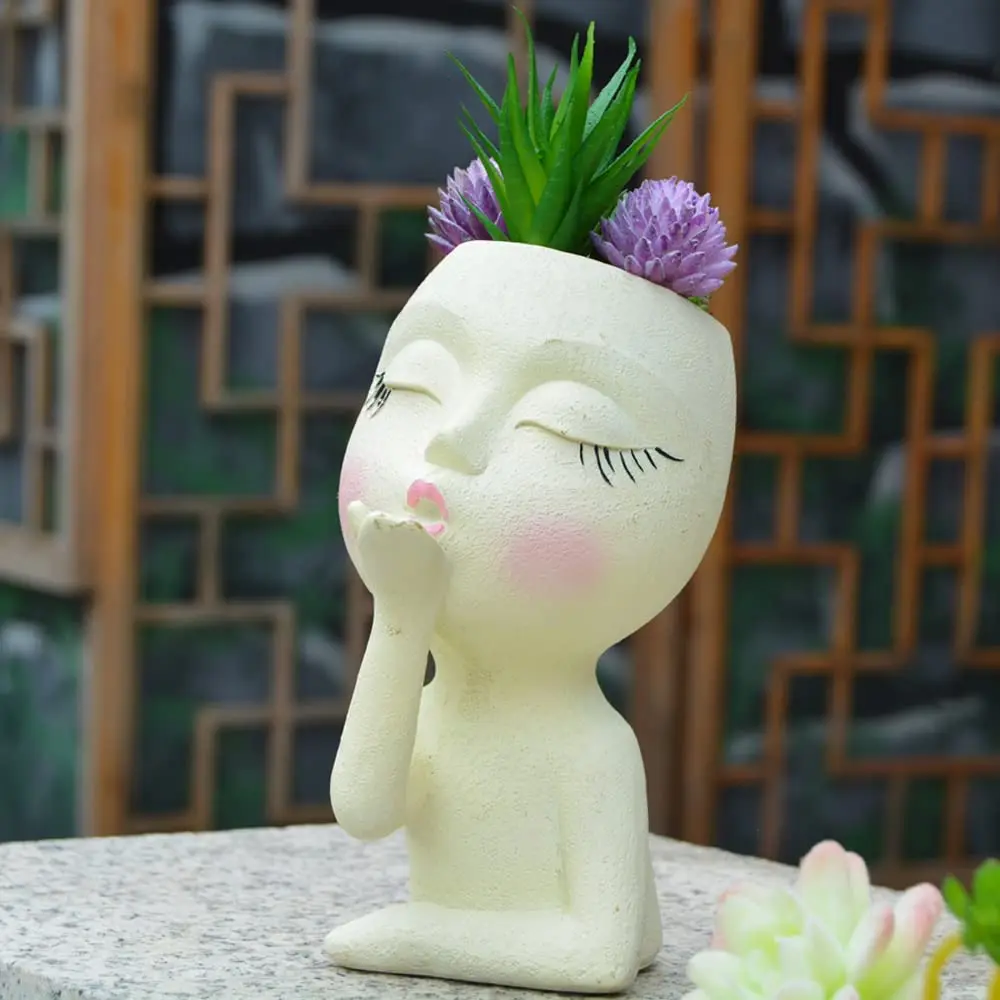 Girls Face Head Flower Planter Succulent Plant Flower Container Pot Flowerpot Home Decor Tabletop Ornament Garden Decoration
