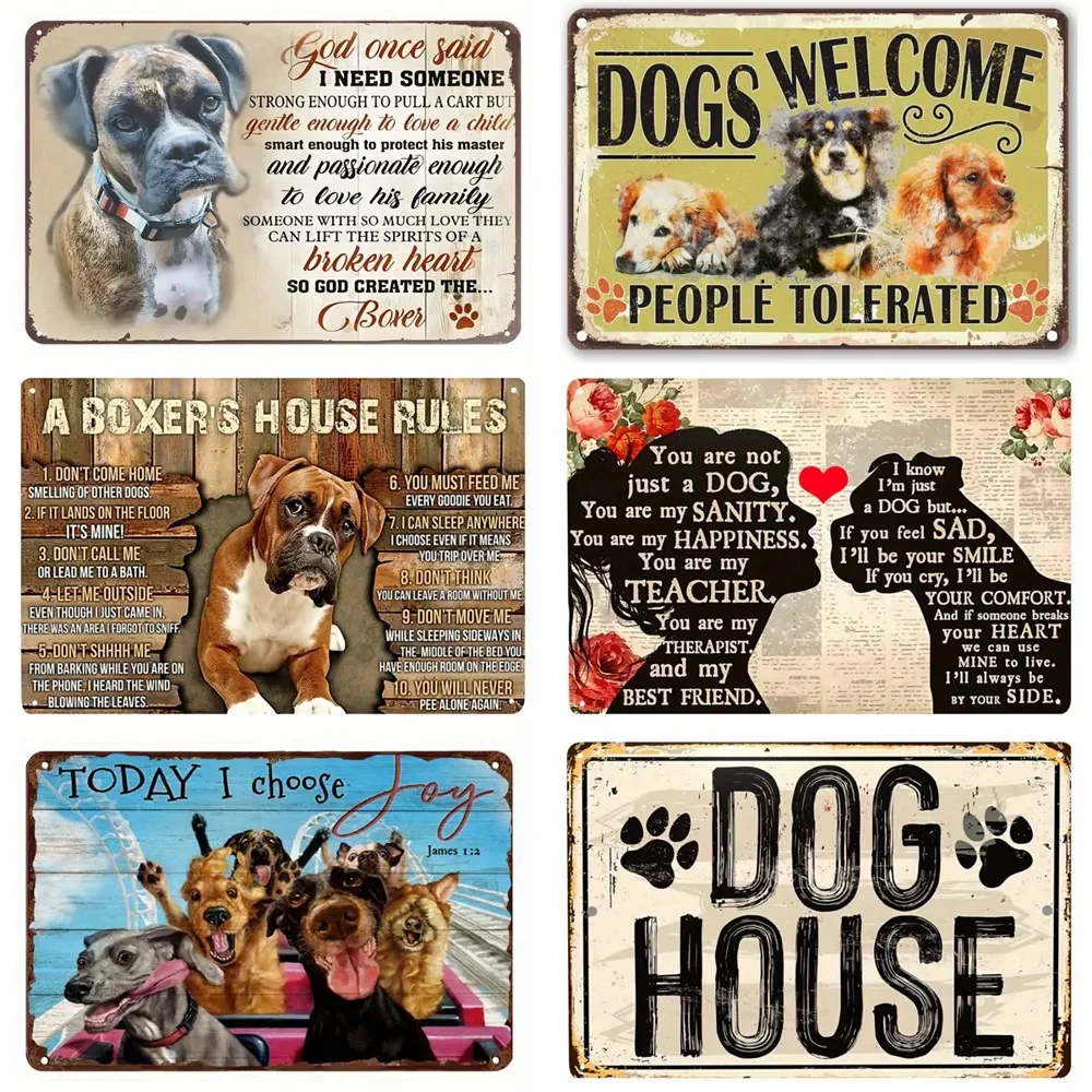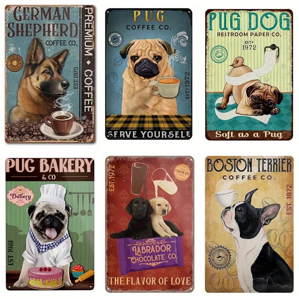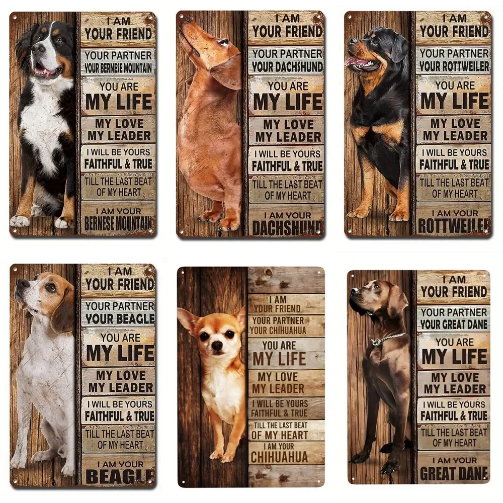 Dachshund Metal Tin Sign Doberman Dog Retro Art Sign Yorkie Funny Pet Poster Cafe Kitchen Home Art Wall Decoration Plaque Gift