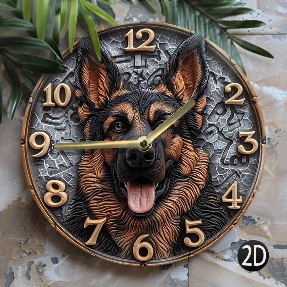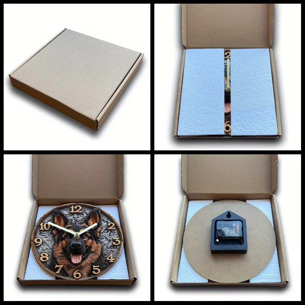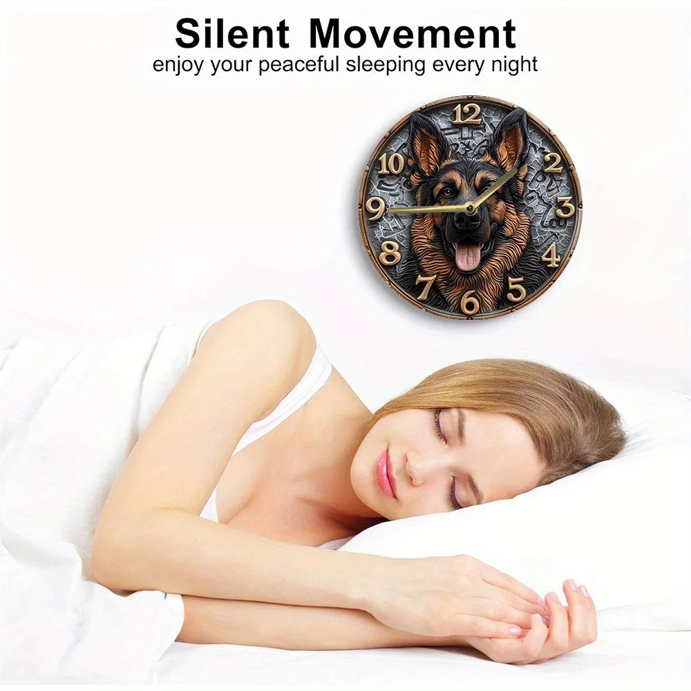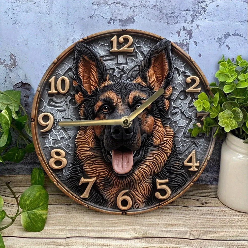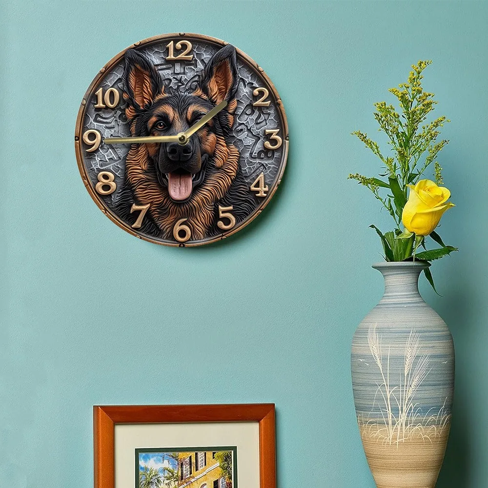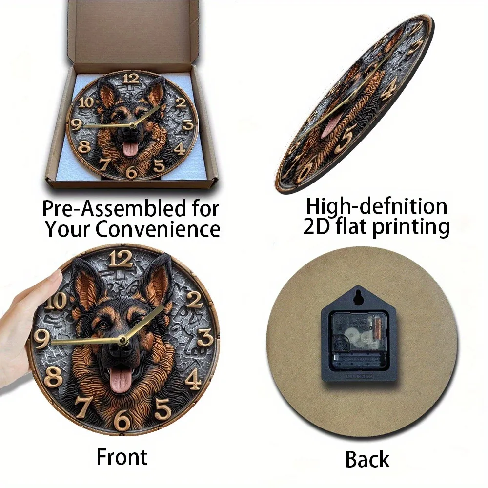 Wooden Wall Clock with German - Shepherd Design, Ideal for Home Decor, Takes AA Batteries