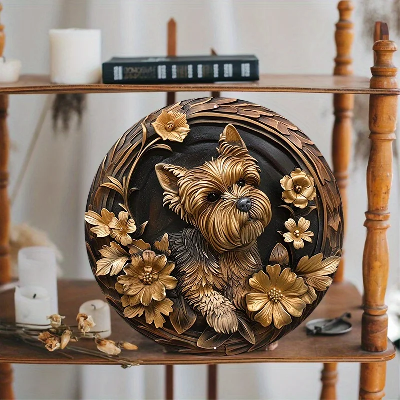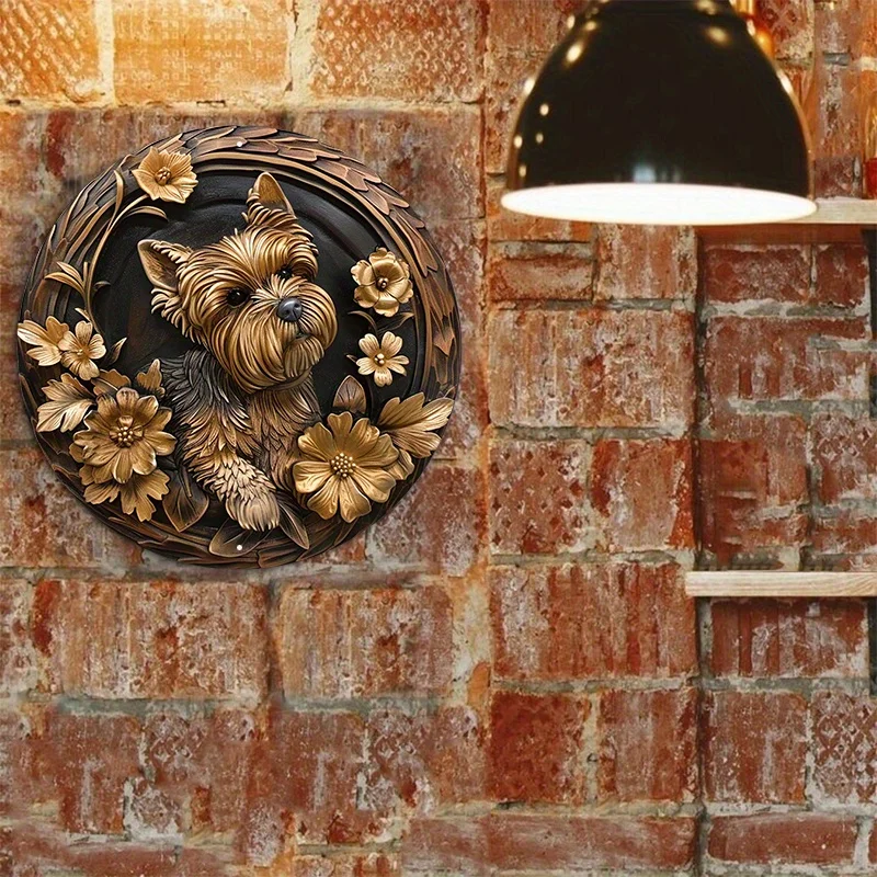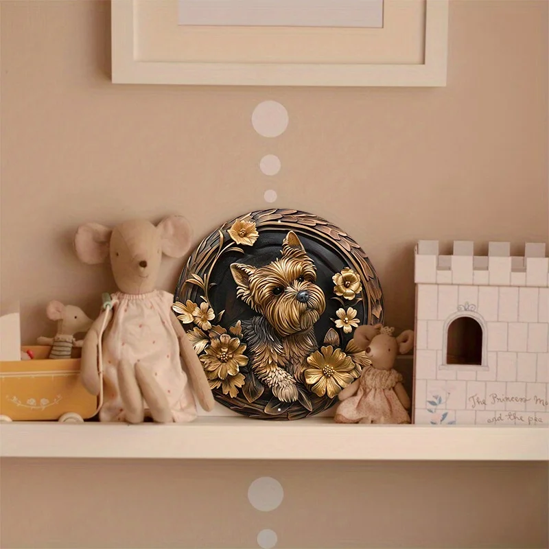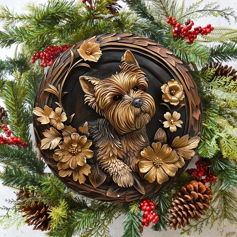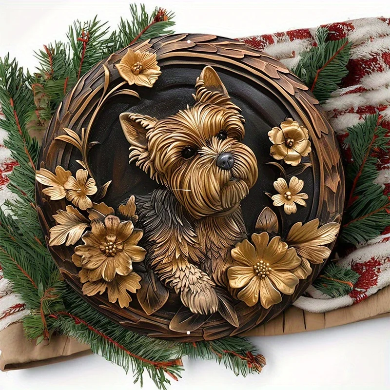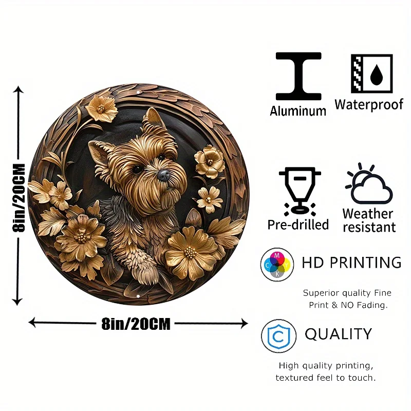 Decorative Round Aluminum Sign, Durable Metal Door Hanger, Wall Sign, Wreath Sign, Home Decor, Yorkshire Terrier, 8x8in, 1PC